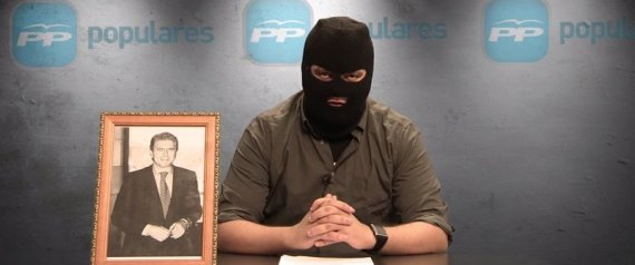 la «dissolution» du Partido Poular, se mettant une capuche, et en lisant la